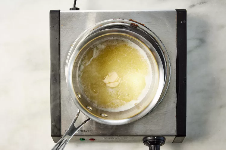 Place the butter in a small saucepan over low heat. Let it melt slowly, watching as it turns glossy and smooth. Once melted, add the minced garlic and stir gently as the aroma becomes warm and fragrant.